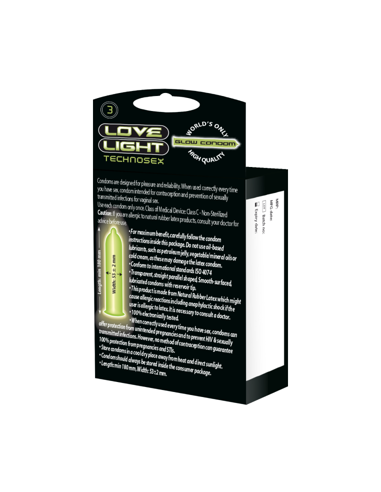 LOVE LIGHT glow condom is the only original glow condom that has many international quality accreditations including CE (European approval) and USFDA. EN ISO 4074